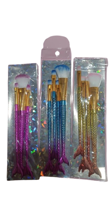 ست براش ۴ تکه طرح ماهی | فانتزی و فشرده | رنگهای طلایی، آبی، بنفش